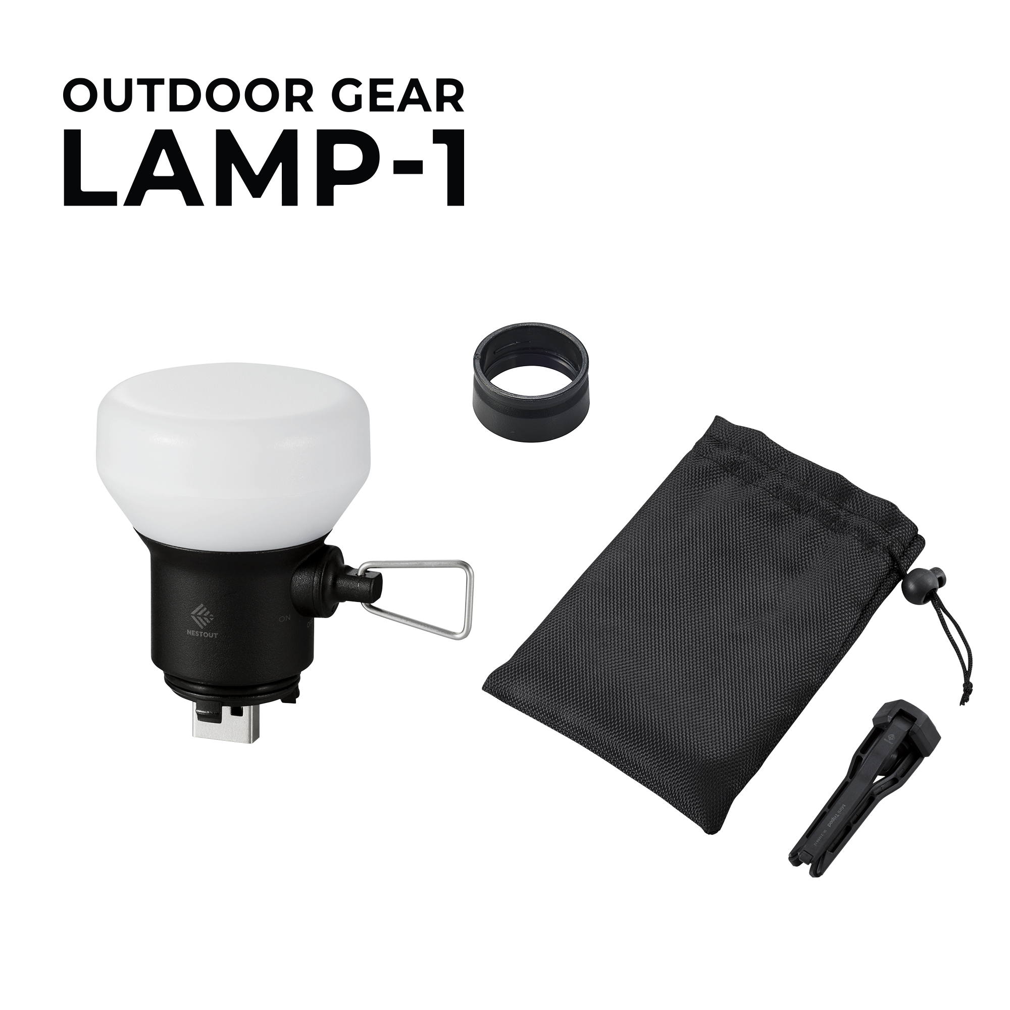 Each NESTOUT LAMP-1 comes with the USB-A lamp accessory, a mini tripod, a spacer, and a storage pouch to keep everything organized.